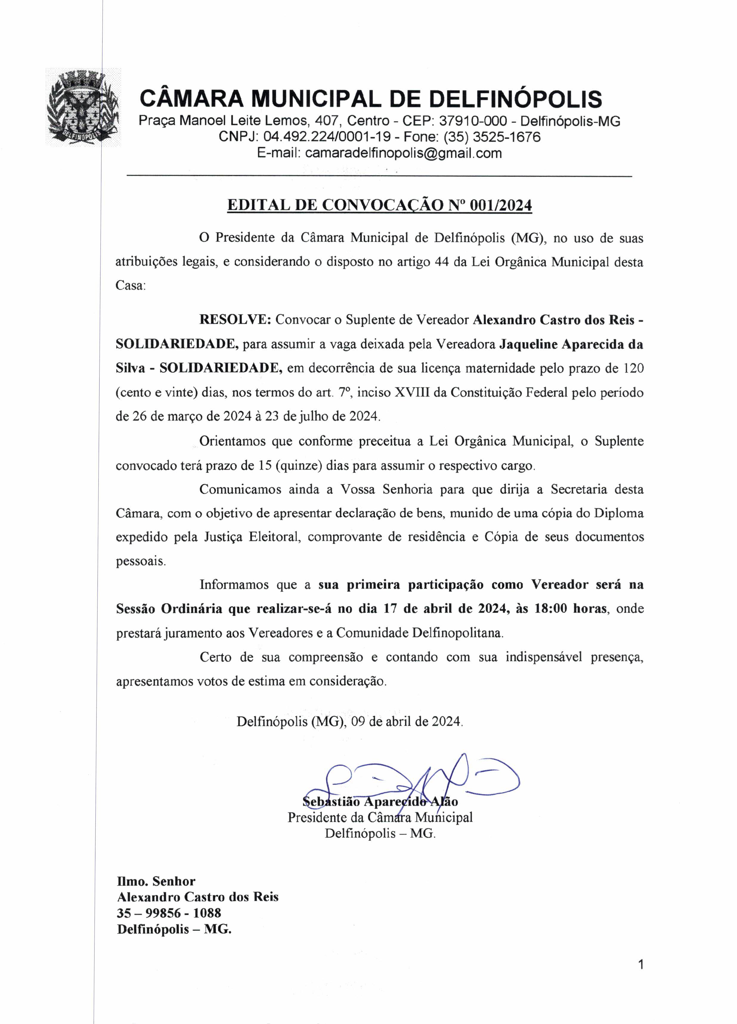 Poder Legislativo Municipal - Estado de Minas Gerais.