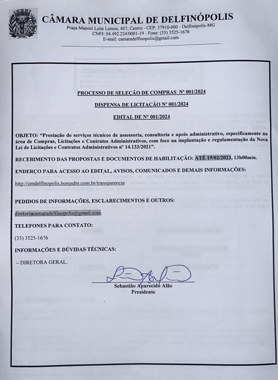 Poder Legislativo Municipal - Estado de Minas Gerais.