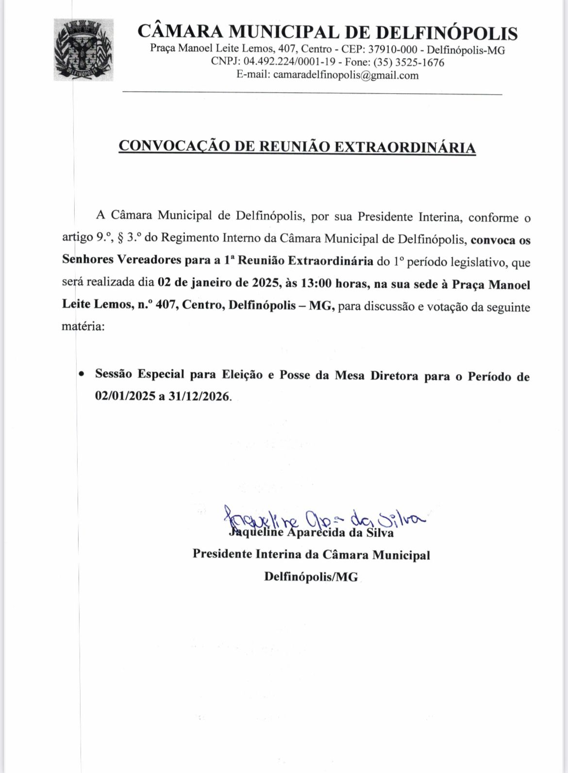 Poder Legislativo Municipal - Estado de Minas Gerais.