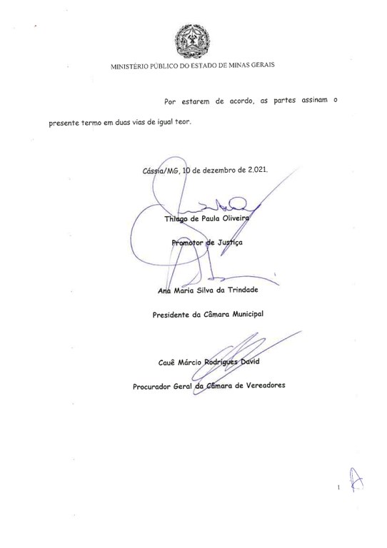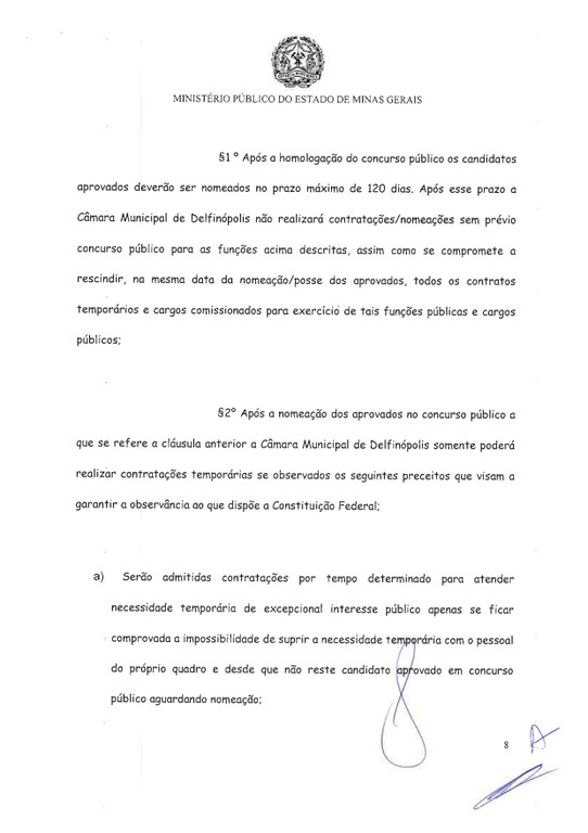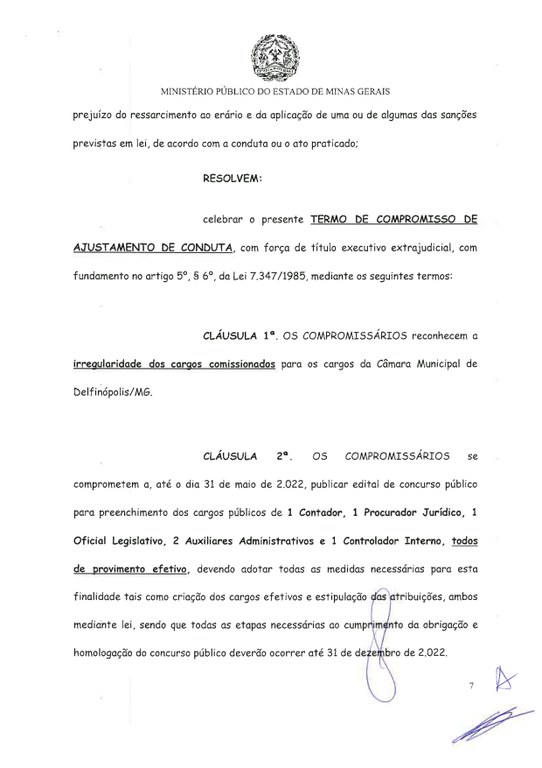 Foi celebrado o Termo de Ajustamento de Conduta (TAC) entre a Câmara Municipal e o Ministério Público Estadual, para que ocorra Concurso Público em 2022 para os cargos do Legislativo Municipal.