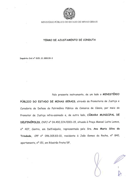 CELEBRAÇÃO DE TAC ENTRE A CÂMARA MUNICIPAL E O MINISTÉRIO PÚBLICO ESTADUAL