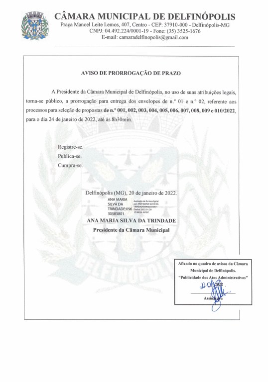 Editais da Câmara Municipal de Delfinópolis (MG) - JAN/2022 - Prorrogado