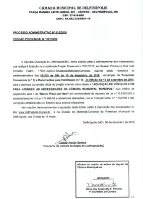 Praça Manoel Leite Lemos, 407 Delfinópolis, MG - CEP: 37910-000CNPJ: 04.492.224/0001-19 Fone: +55 35 3525-1676 E-mail:camaradelfinopolis@gmail.com